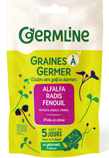 Mélange de graines bio alfalfa - radis - fenouil, des graines à germer bio pour un cocktail énergisant et stimulant.