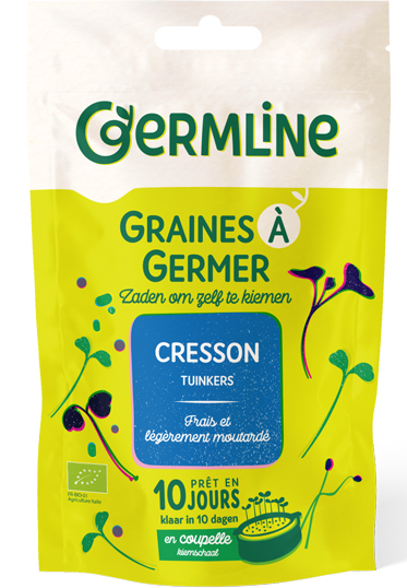 Les graines à germer de cresson bio GERMLINE ont une saveur piquante. Elles apporteront de belles saveurs à vos salades et potages.
