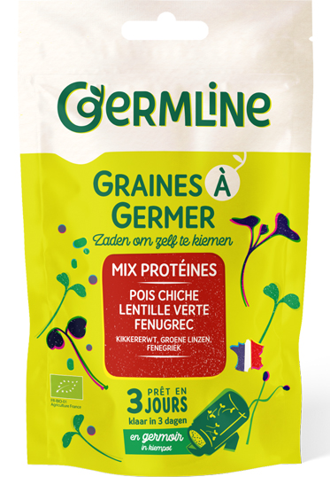 Paquet de graines à germer mélangées bio "Mix Protéines", un véritable cocktail de protéines à faire germer chez soi.